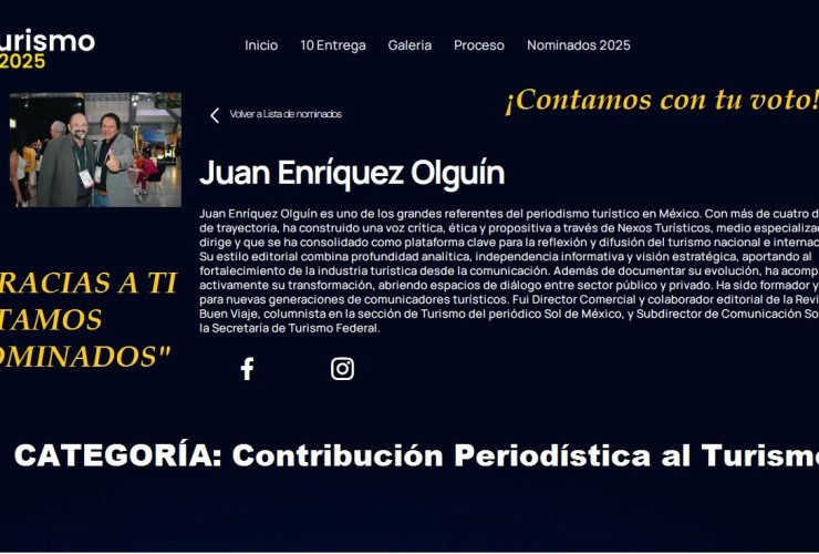 Se dieron a conocer los nominados a los premios el Ángel del Turismo en su décima edición, entre ellos a Juan Enríquez Olguín, Director General de Nexos Turísticos en la Categoría “Contribución al Turismo”.