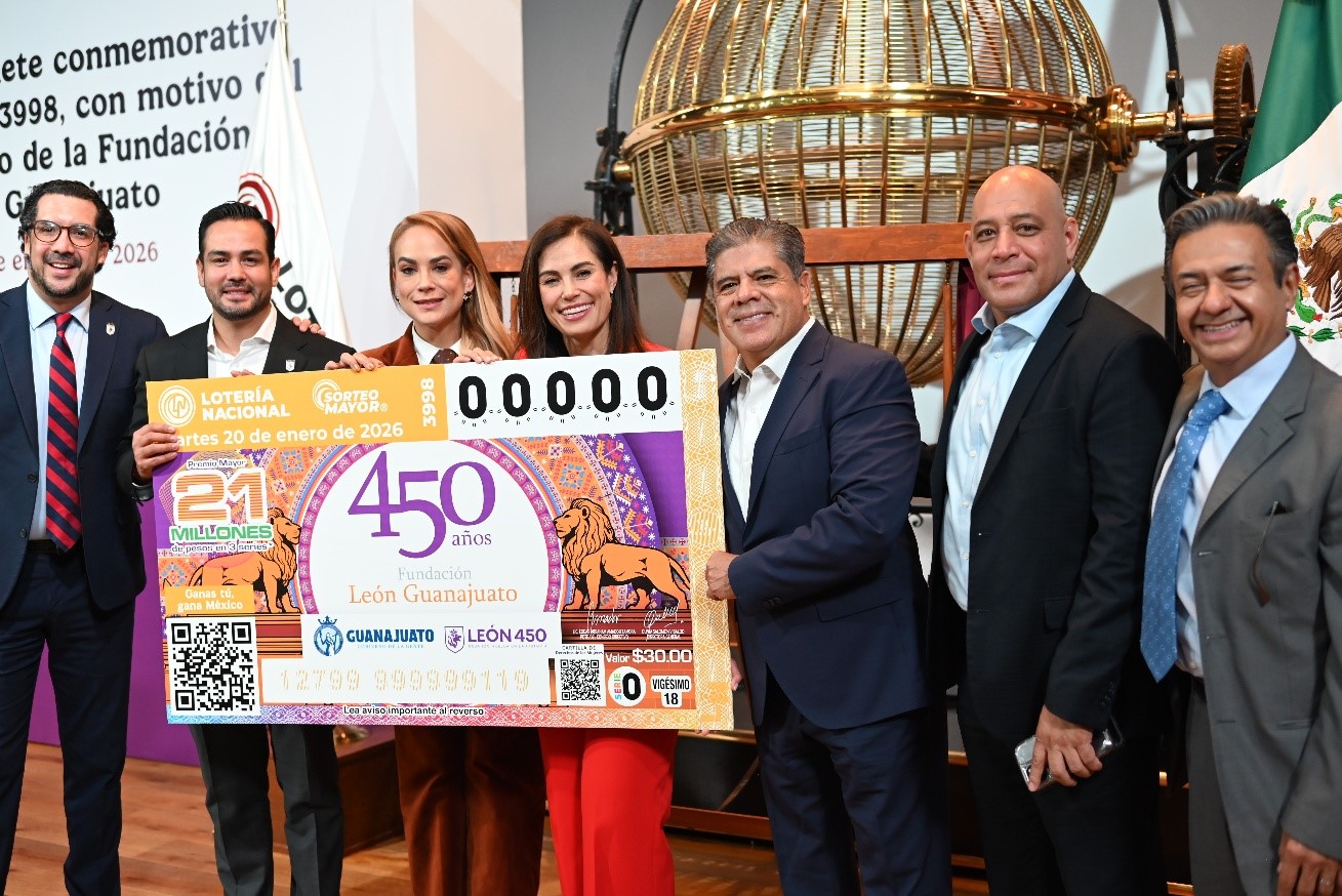 Lotería Nacional, el Gobierno del Estado de Guanajuato y el Municipio de León, presentaron el billete del Sorteo Mayor No. 3998, para conmemorar los 450 años de la fundación de la ciudad de León.