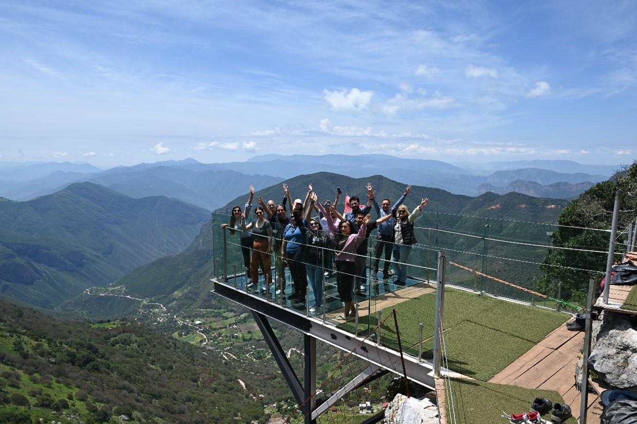 El final del FamTrip por la Sierra Gorda queretana se llevó a cabo con la foto oficial grupal en el Mirador de Cristal de Pinal de Amoles, lugar en donde el visitante puede disfrutar de una espectacular vista panorámica desde las alturas en el Mirador, ubicado en la Peña de las Guacamayas, a un costado de la Puerta del Cielo. Las fotos y selfies son ideales en este lugar que se encuentra en un cañón con más de 200 metros de profundidad.